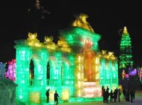 With five large snow structures and 300 exhibits on display, the exhibition has six tourism zones and five match areas. The photo shows the "China Century Altar", a snow sculpture built at the 1:4 ratio.