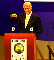 Clinton was in Shanghai to address the Credit Lyonnais Securities Asia investment forum and spoke about the need to work towards greater globalisation and alleviate poverty in Third World countries.