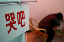 The photo taken on November 3, 2004 shows the signboard of a "cry bar" in Hefei, capital of east China's Anhui Province. People, who want to give full vent to their grievances, sorrow and frustration, can cry in the bar by paying 50 RMB yuan (US$6) per hour.