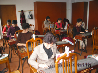 Retirees are exercising Guzheng, a traditional Chinese instrument, in an eldly activity center in Hangzhou city, Zhejiang, one of the richest provinces in China.