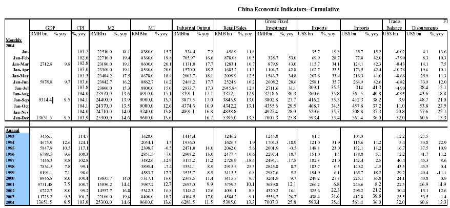 The macroeconomic outlook for 2005 remains favorable, with a supportive external environment, prospects of robust domestic demand growth, and waning underlying inflation pressures. In these circumstances, policymakers are rightly putting emphasis on institutional and structural reforms. The December Central Economic Work Conference formulated directions on macroeconomic management, public finances, and institutional and structural reforms. The announced switch from a "proactive" to a "prudent" monetary policy stance likely reflects the authorities' willingness to increase interest rates if warranted. Announced further interest rate reforms could improve rural finance and resource allocation. The fiscal deficit target for 2005 remains largely unchanged from last year's outcome, whereas the announced increase in government spending on public goods and services, especially in poor rural regions, could improve equity and increase consumption. Several worthy tax reforms are under consideration, including unification of enterprise income tax regimes and a fuel tax. To reduce the tendency of over?investment and improve the use of land, urban finance, the intergovernmental fiscal system, and the performance monitoring system for local governments are in need of reform.