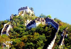 Setting out from Beijing, the most popular destination for visiting the Great Wall is Badaling. Both trains and buses go to the northwest of the city proper in a deep mountain-flanked gully 15 kilometers long. In summer, the peaks here are covered with brilliant stretches of leaves and luxuriant flowers. As early as the 13th century, the area was known for its beauty, and was listed as one of the"Eight Great Sights of Yanjing." The name "Juyong" first appeared in the huainanzi, a philosophical work from the second century BC, in the following annotation: "The Juyong Pass is one of the nine great passes in the country."