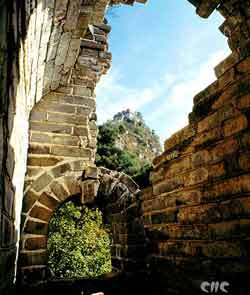 The 158 battle platforms in the Gold Mountain section of the Great Wall were designed in a great variety of shapes-square, circular, oval and multi-cornered. Their interiors are constructed of wood or brick and their roofs are flat, domed or barrel-vaulted. There are also variations in the shape of the archways, which give access to the battle platforms.