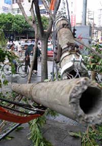 Areas where the eye of the typhoon passed through were hit by strong windsat the speed of 45 metres per second.