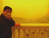 The picture shows that a passer-by covers his mouth as a dust storm strikes Beijing, turning the sky an amber colour and reducing visibility to 500 meters, on March 20, 2002.