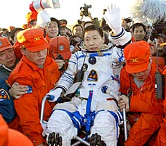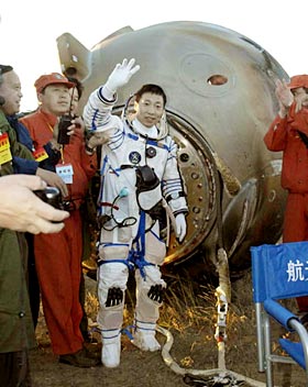 On the morning of October 16 (Beijing time), the Chinese-made Shenzhou V spacecraft successfully accomplished its mission including several scientific experiments after orbiting the earth 14 times, landing safely on the Amugulang grassland in Inner Mongolia at 6:23 am.