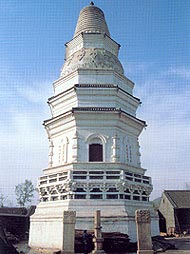 Combining the multi-eaved and inverted-bowl Lamaist styles, the White Pagoda in Jixian County is unique among ancient pagodas in China. It bears resemblance only to the North Pagoda in Yunju Temple. Both are masterpieces of the Liao Dynasty.