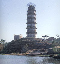 Located outside the Wenming Gate south of the county town of Shuikou, the pagoda was built in 1584 during the Ming Dynasty. This octagonal, nine-storeyed, brick structure has two staircases, which were so designed that if two people going up at the same time from a different stairs, they will never meet. This unique feature distinguishes it from other multistoreyed pagodas.