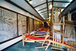 Most days Xie takes the bus to the Shu Brocade Academy in the city's western suburbs. Opened last year, the one-story building serves as both a makeshift museum where visitors can get a basic idea of the history of the Shu Brocade and buy silk works.