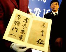 The stolen work is a poem written by Zhu in 1182 to celebrate two of his followers passing imperial civil examinations.