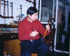 Liu, who plays the jinghu, has been making the instrument for more than three decades. He is now considered to be a master.