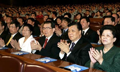 About 340 musicians from the Chinese mainland, Taiwan and Hong Kong took part in the symphony, which is a prelude to a series of performances commemorating the 60th anniversary of the victory in the anti-fascist war in Europe and in the war against Japanese aggression (collectively called World War II in the west).