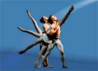 The leading roles are set off by supporting soloists, by a small corps de ballet. Four women advance on the Melancholic soloist, each step a huge high kick followed by a forward thrust of the pelvis. The Phlegmatic corps shift their weight jazzily from one foot to the other, syncopated wit.