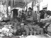 Lamas also use wooden bowls. People who know the monasteries well can tell which monastery the lama is from by the shape of his bowl. The iron-club lamas who command very high position in the monasteries always move the bowl from one hand to the other playfully, which is quite dazzling.
