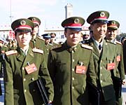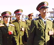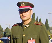 Yi Xinqun (first from the right) is a model soldier of the Chinese People's Liberation Army (PLA).