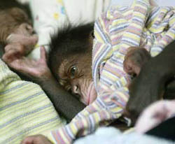 Two chimp cubs were born to the Beijing Zoo on July 10 and 20, but one mother chimp refused to feed her baby and another has no milk. The zoo had to ask Beijing mothers to donate milk to feed the two cubs. Two Beijing women have donated more than 2,000 milliliters of milk. The cubs, now weighing over three kilos each, are in good health. Zookeepers now take good care of the two cubs.