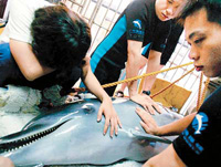 Guangzhou's smartest dolphin L, 7 years old, died after veterinarians took a steel scrap from her stomach Wednesday afternoon in the ocean world, the Guangzhou Daily reported.