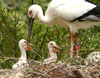 An imported white stork looks after her two babies incubated two months ago in a bird zoo of Fuzhou, southeastern China?s Fujian Province.