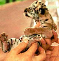 A Manchurian baby tiger was born in the World Window Park in Hunan Province on May 24, 2003.