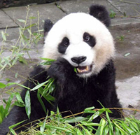 A giant panda named "Daili", whose left hind leg was amputated, eats bamboo at a protection station of the Fengtongzhai National Natural Reserve in southwest China's Sichuan Province Aug. 26.
