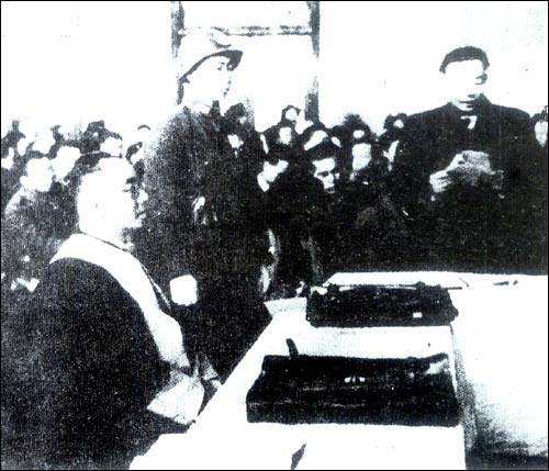 The Nanjing military court in China formally opens hearings to try Japanese war criminals.