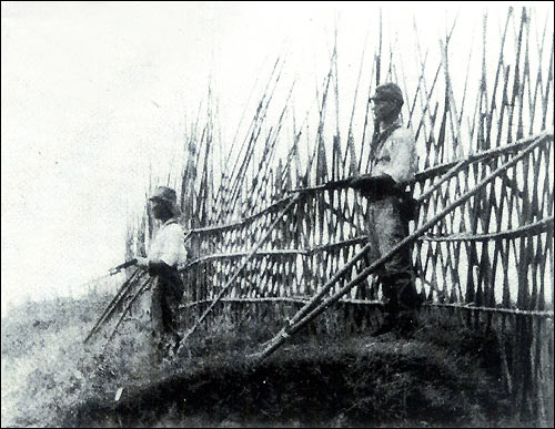 The Japanese turned vast areas along the Great Wall in north China into "no-man's-land," Shown here is the border line of the "no-man's-land."
