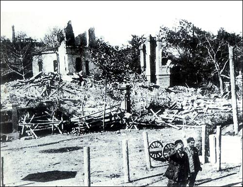 Japanese planes bombed the three towns in Wuhan. Seen here is Hanko after the calamity.