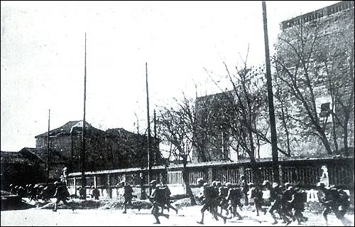 Chinese soldiers attacking the enemy that stormed into the city in September 1939, during the First Changsha Campaign.