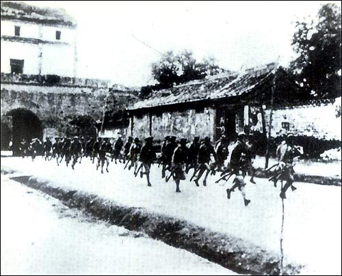 Soldiers of the 29th Army in Wanping town run to Lugouqiao for battle.