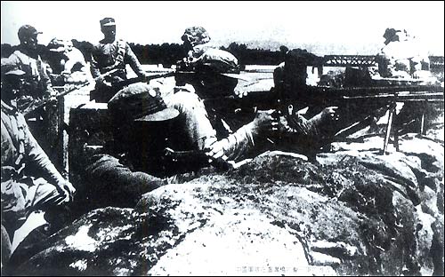 The 29th Army soldiers fight against Japanese troops at Lugouqiao.