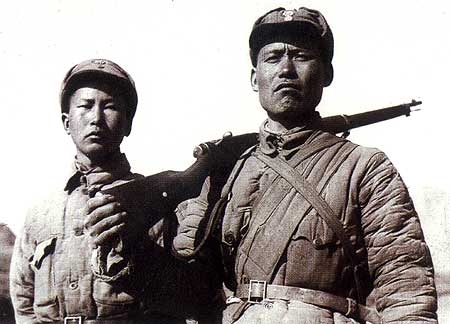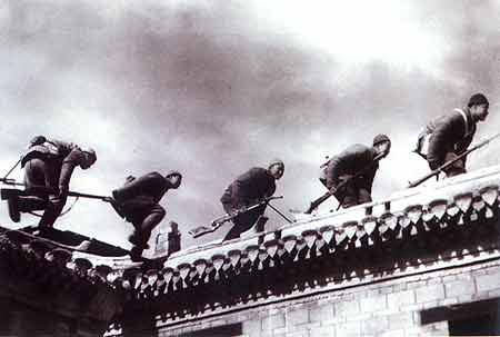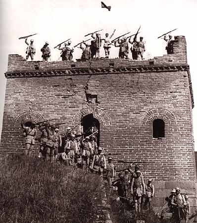 Eighth Route Army soldiers celebrating victory on the Great Wall.