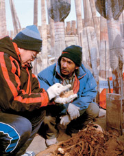 Idelisi and his fellow archaeologists began the formal excavation of the Xiaohe Tombs two years ago, with the approval of the State Administration of Cultural Heritage. On an early morning in October 2003, Idelisi and the archaeological research team he headed set off from Alagan. Their caravan first traveled northwest and passed through an expanse of withered red cedars.