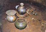 workshops must be the thousands of pottery moulds of the Western Zhou Dynasty. These were the actual moulds that were used in ancient times to produce such artifacts as ding, gui (round-mouthed food vessels with two or four loop handles), li (tripod cooking vessels with hollow legs), jia (round-mouthed three-legged wine vessels), kettles, vessel lids, small tinkling cart bells, horse curb bits, bronze buttons, bells and tools, as well as some other previously unknown items. The hands of ancient artisans had decorated some of the pottery moulds with intricate designs.