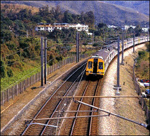 From 1990 to 2001, an annual average of some 1,092 km of new railways, 837 km of multiple-tracked railways and 962 km of electrified railways were open to traffic. By the end of 2003, operating railways in China had reached 73,100 km, including 23,700 km of multiple-tracked railways and 18,500 km of electrified railways. At present, with 6 percent of the total operating railways in the world, Chinese railways carry some 25 percent of the world's total railway workload, making China one of the countries with the largest rail transport volume. China also takes the lead in the growth rate of transport volume and in the efficient use of transport equipment. Since 1988, China has raised its train speed significantly four times, involving a total of 13,000 km of railways. As compared with that of 1997, the average operation speed of passenger trains has increased by 25 percent. The highest speed of special express trains increased from 120 km to 160 km per hour, and the passenger trains from Guangzhou to Shenzhen can operate at up to 200 km per hour.