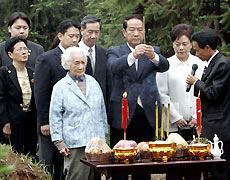 | Soong paid homage to his great grandfather and grandparents in Juyu Village. |