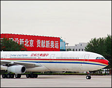 Lien's flight arrives in Beijing.