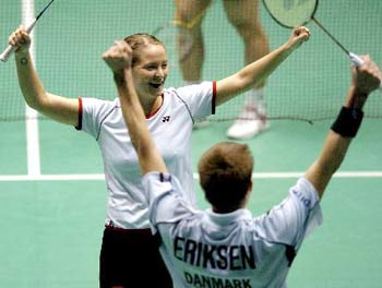 Olympic bronze medallists Jens Eriksen and Mette Schjoldager of Denmark won the China Open badminton mixed doubles after a marathon final against China's Chen Qiqiu and Zhao Tingting.