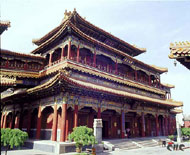 Situated on the east side of Yonghegong Street in the northeastern corner of the city, the Yonghe Lamasery is the largest and best-known lamasery in Beijing. The principal components are three exquisite memorial archways and five major halls, all of which stand on a north-south axis. The total area of the compound calculated from the southernmost memorial archway to the lamasery; s northernmost point is 66,400 square meters.