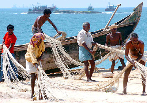 | Several fishermen going fishing on the sea near Kanniyakumari, south India on February 3. The Indian government has approved a decision to provide those who have lost their vessels with loans and grants. They will get a subsidy of 35 percent for buying mechanized boats. |