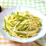 Ingredients: 200 grams (0.44 lb) potatoes 50 grams (0.11 lb) green peppers 50 grams (3 1/2 tbsp) salad oil 1/2 gram (1/8 tsp) MSG 1 gram (1/6 tsp) salt 1/2 gram (1/8 tsp) sugar 5 grams (1 tsp) mixture of cornstarch and water 50 grams (3 tbsp) water