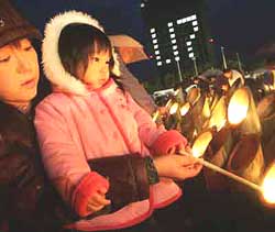 A plethora of commemorations testified to the depth of the 1995 tragedy: Hundreds of tearful survivors held a candlelight vigil at the time of the pre-dawn quake at 5:46 am, illuminating the form of the date, 1.17; students sang memorial songs about the catastrophe; rafts of dignitaries, including Emperor Akihito, filed into ceremonies organized by local authorities.