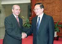The two sides also exchanged views on the issues of the Mideast, Iraq and China's ties with Arab countries.