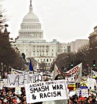 With Washington massing troops and equipment in the Gulf and Baghdad declaring itself mobilized for battle, tens of thousands of demonstrators in Europe, the Middle East, Asia and the Americas beat drums, clogged traffic and chanted slogans denouncing a US-led war on Iraq.