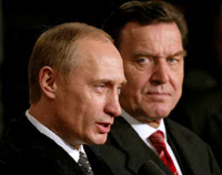Putin, who arrived in Berlin on Sunday morning, is due in Paris on Monday for talks with French President Jacques Chirac on Iraq.