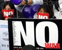Bearing banners and placards proclaiming "Do not Attack Iraq," about 1,000 South Korean protesters, mainly consisting of university students and activists, rallied in a park in the capital of Seoul, and they were joined by many foreigners.