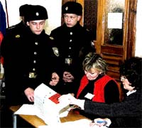 About 55.7 percent of the approximately 109 million eligible voters took part in the parliament polls, lower than the turnout of 64.75 percent in the 1999 Duma election.