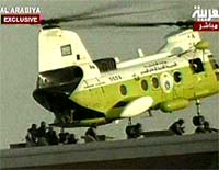 In a dramatic end to the stand-off, television pictures showed helicopters dropping commandos onto the roof of the complex. After freeing about 50 hostages, Saudi forces arrested several gunmen, including their leader. Three militants escaped.