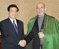 Hu told Karzai that he was shocked and deeply saddened by the terrorist attack on Chinese workers in Afghanistan. China thinks what the Afghan government has done so far to deal with the aftermath of the attack was positive, but hopes the Afghan government would do more, the Chinese president added.