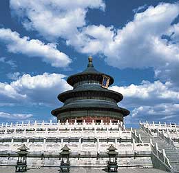 The Temple of Heaven in the southern part of Beijing is China's largest existing complex of ancient sacrificial buildings. Occupying an area of 273 hectares, it is three times the area of the Forbidden City. It was built in 1420 for emperors to worship Heaven. The principle buildings include the Altar of Prayer for Good Harvests, Imperial Vault of Heaven and Circular Mound Altar.