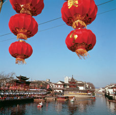 In the moonlight, the Qinhuai River, a narrow river passing through the southwestern part of Nanjing, carries small boats to their destinations. Brick-structured houses with whitewashed walls and gray roofs line the banks where people get together in twos and threes to enjoy free-flowing conversations.